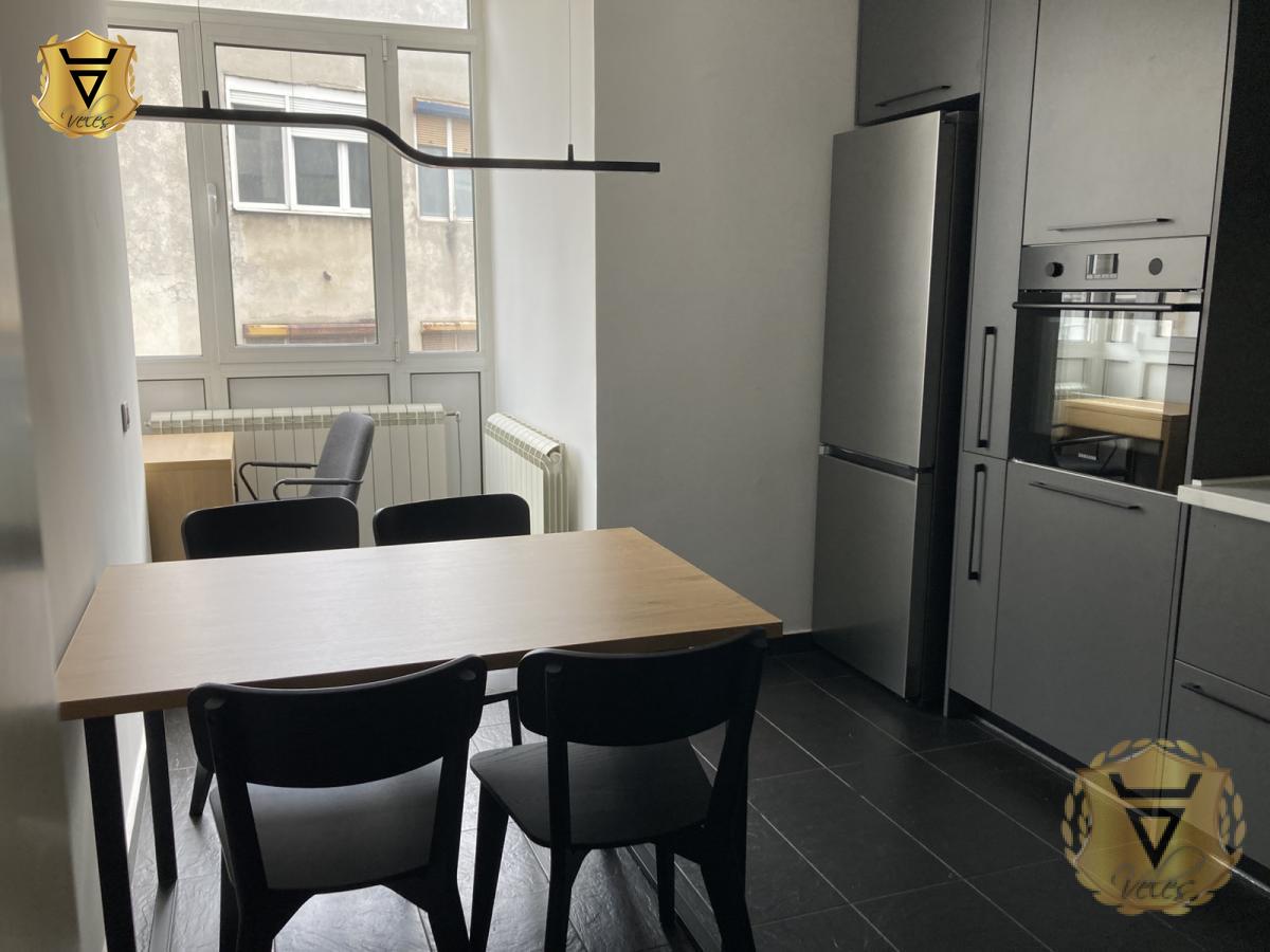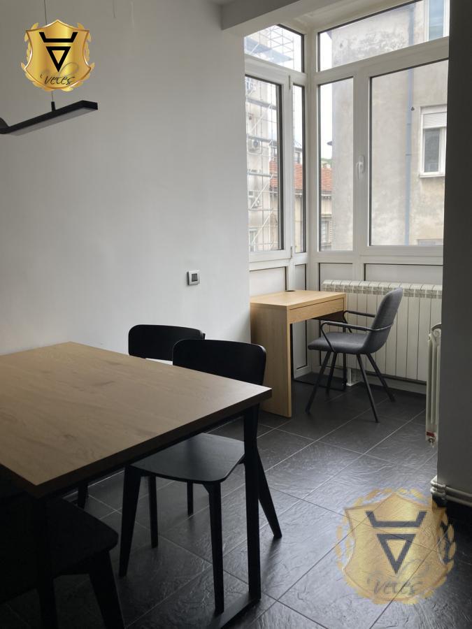 | Izdajemo moderan, namesten, komforan, kompletno renoviran dvosoban stan na Vračaru u Braničevskoj ulici u neposrednoj blizini Hrama Svetog Save. Stan se sastoji od ulaznog hodnika, svetlog i prostranog dnevnog boravka sa pogledom na mirno dvoriste, velike spavaće sobe koja je opremljena francuskim ležajem, velikim radnim stolom sa podesivom visinom, kliznim plakarom i walk-in garderoberom i poseduje izlaz na zastakljenu terasu sa koje se pruža pogled na Hram Svetog Save. Kuhinja je prostrana, moderna, kompletno opremljena tehnikom, sa dodatnim stolom za ručavanje i radnim kutkom. Sva tehnika, namestaj i kuhinja u stanu su potpuno novi i nekorisceni. Stan je dvostrano orjentisan (istok-zapad) i nalazi se na drugom spratu dobro očuvane starije zgrade bez lifta, koja je nedavno kompletno renovirana. Grejanje je centralno i stan poseduje i dve inverter klime i aluminijumsku stolariju. Uz stan se moze koristiti i ogradjen podrum od 30m2. Zgrada poseduje privatno dvoriste koje predstavlja mirnu oazu u srcu grada. Stan se izdaje na minimalni period od godinu dana. Agencija za nekretnine Veles broj u registru posrednika 1149 Agencijska provizija 50%* Način plaćanja: kirija+depozit+ag.provizijaTV, Veš mašina, Frižider, Šporet, Kreveti, Plakari/Ormani, Sudopera, Kuhinjski elementi, Video nadzor, Interfon, Internet, Telefon, Kablovska, Klima, | |