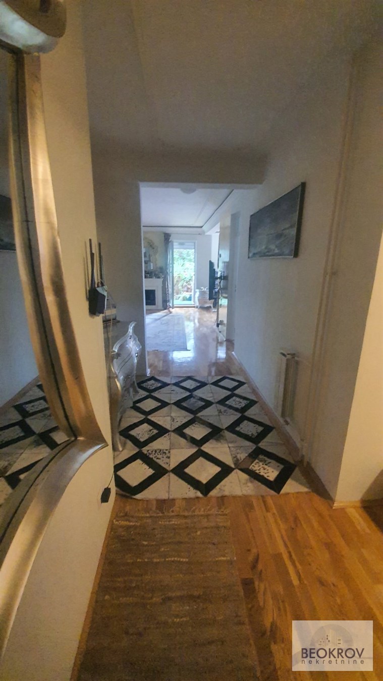| Trostran, svetao, zelenilo, italijanske lux kuhinjski uređaji, sanitarije i keramika; klime, kamin na bioetanol,kožne garniture, trpezarija sa duborezom, tv plazma, 2 kupatila, 2 terase, 3 spavaće sobe, sauna, američki plakari, podrum(12m2), garažno mesto ( 18m2 ) u zgradi. Useljiv je od 01.07.2025. godine. Ukupna zakupnina za stan, saunu i garažno mesto iznosi 1300 Eur mesečno + depozit. Označena je približna lokacija. Zakupac plaća proviziju u iznosu u visini od pola mesečne zakupnine. 069 2365768 | |