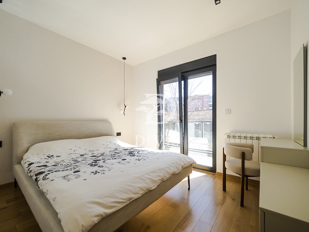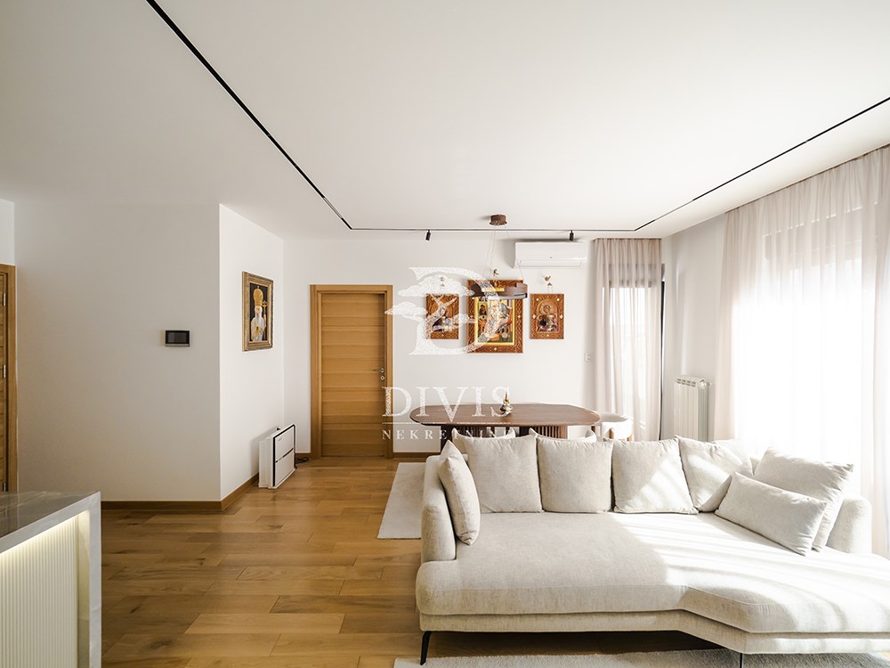 | Prodajemo odličan četvorosoban stan na Vračaru u Šumatovačkoj ulici u blizini Južnog Bulevara. Stan se nalazi se na prvom spratu luksuzne novogradnje iz 2023. god sa liftom. Sastoji se od ulaznog hodnika, dnevnog boravka sa kuhinjsko-trpezarijskim delom, tri spavaće sobe, kupatila, gostinskog toaleta i dve terase. Prilikom izgradnje korišćeni su najkvalitetniji materijali poput hrastovog parketa I klase, ALU spoljne stolarije, jako kvalitetne unutrašnje stolarije, luksuzne uvozne granitne keramike, sanitarije, rasvete. Stan poseduje centralno grejanje sa kalorimetrima. U kuhinji, hodniku, kupatilu i toaletu je postavljeno podno grejanje. Kompletan nameštaj je vrhunskog kvaliteta. Kuhinja, komode, vinarija i plakari su rađeni po meri od strane renomiranog proizvođača. Kuhinja poseduje sve najkvalitetnije "Bosch" aparate. Trpezarijski sto je ručno rađen od orahovog drveta dok je i veliki deo nameštaja nabavljen u radnji "Polcelanosa. Zgrada poseduje SMART sistem koji omogućava upravljanje preko mobilnog telefona svim elektronskim uređajima poput grejanja, klimatizacije, rasvete, roletni i dr. Dvostrano je orijentisan (jug-istok) i veoma svetao tokom dana. Prodaje se kompletno namešten. Postoji i mogućnost kupovine prostranog garažnog mesta sa silaskom preko klasične rampe po ceni od 27.000 EUR-a. Retko u ponudi! Za svaku preporuku! Posrednička naknada je u skladu sa Opštim uslovima poslovanja Posrednika DIVIS NEKRETNINE DOO | |