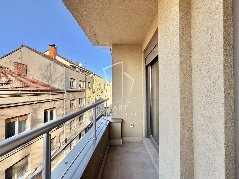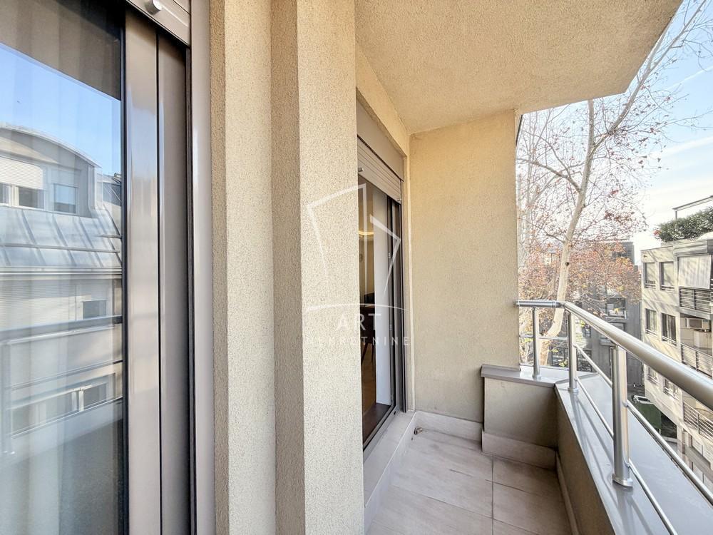 | Uknjižen, trosoban, adaptiran u 3.5 stan ,97 m2 ( dve terase ), na trećem spratu od 4 sprata ,toplotne pumpe ( grejanje i hlađenje), lift, interfon, video nadzor, internet, garažno mesto uz doplatu. Raspored prostorija : Ulazno predsoblje, dnevna soba sa trpezarijom, i u nastavku izdvojena kuhinja, tri spavaće sobe, dva kupatila i dve terase. Stan je jako lepo opremljen, i prodaje se kompletno opremljen. Zgrada iz 2015. godine,odlična gradnja. Uz stan se može kupiti garažno mesto sa normalnim ulazom. Parking na betonu po ceni od 40 000 eura. Agencijska provizija 2% Agent: Milica Cagić br. licence 241 “Art nekretnine“ d.o.o. Beograd. Reg. br.339 0112620734 . | |
