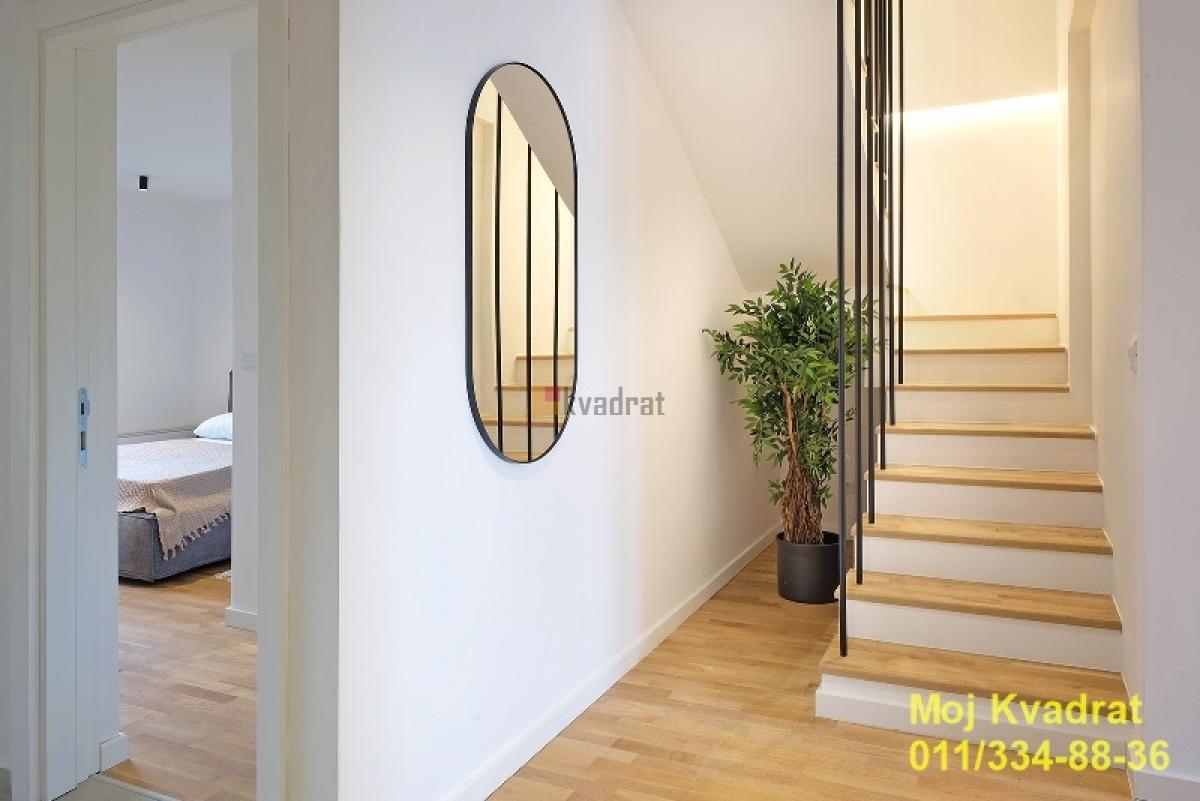 | Vračar, Crveni krst - Sazonova 6.0, 174m2, dve terase, grejanje na toplotne pumpe, lift, 5/5, interfon, dva garažna mesta Luksuzan i moderno dizajniran penthouse, u mirnoj ulici sa puno zelenila. Stan je na dva nivoa. Na prvom nivou se nalazi prostrani dnevni boravak sa kuhinjom i trpezarijom, dve lepe spavaće sobe od kojih je glavna sa sopstvenim kupatilom, još jedno kupatilo, vešernica i dve terase za uživanje. Veća terasa, na koju se izlazi iz dnevnog boravka, ima divan otvoren panoramski pogled, a manja terasa, na koju se izlazi iz glavne spavaće sobe, ima direktan pogled na slobodnu zelenu površinu. Drugi nivo stana organizovan je kao dve celine, pri čemu jednu celinu čini spavaća soba i manji dnevni boravak, a drugu celinu čini soba koja je nameštena kao kancelarija u čijem se nastavku nalazi dodatni prostor (koji može da posluži za različite namene), još jedne prostorije - garderobera, i lepog kupatila. Donji nivo je površine 113m2, a gornji nivo površine 61m2. Ovaj penthaus je odlično organizovan, dvostrano je orijentisan i veoma svetao. Stan je pažljivo projektovan i maksimalno funkcionalan. Ima odličnu toplotnu izolaciju. Aluminijumska stolarija sa termoizolacionim staklom i roletnama sa elektromotorima, podovi - hrastov troslojni parket, granitna keramika visokog kvaliteta. Zgrada se nalazi na atraktivnoj lokaciji u srcu Vračara, u blizini Beogradskog dramskog pozorišta, Doma zdravlja, škola i vrtića. Stan se prodaje kompletno namešten kao na slikama. Mogućnost kupovine dva garažna mesta po ceni od 40.000 eura za oba. Odmah useljiv. Uknjižen na 113m2, stvarna merena 174m2. Topla preporuka! Agencijska provizija 2% Agent Sava Vuletić: 062/14-57-616 (licenca br. 3573) Interfon, Nije prizemlje Odmah useljiv Penthouse Gradska kanalizacija | |