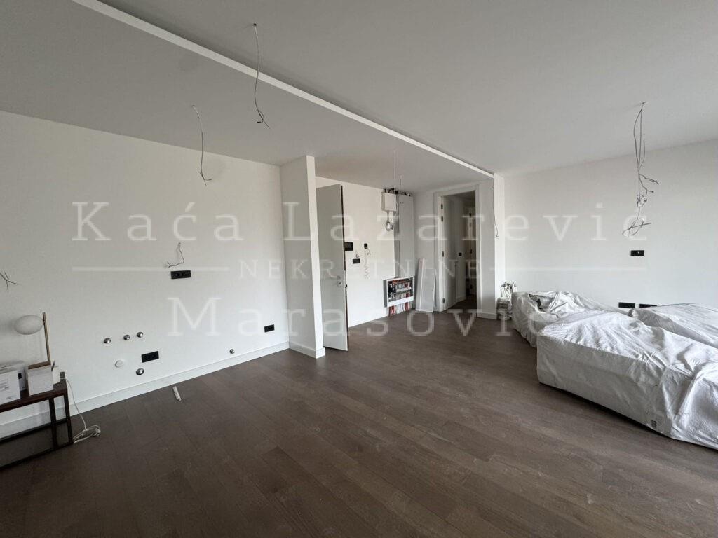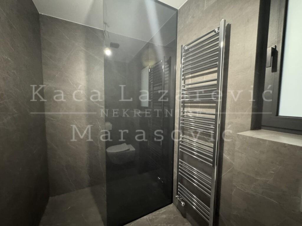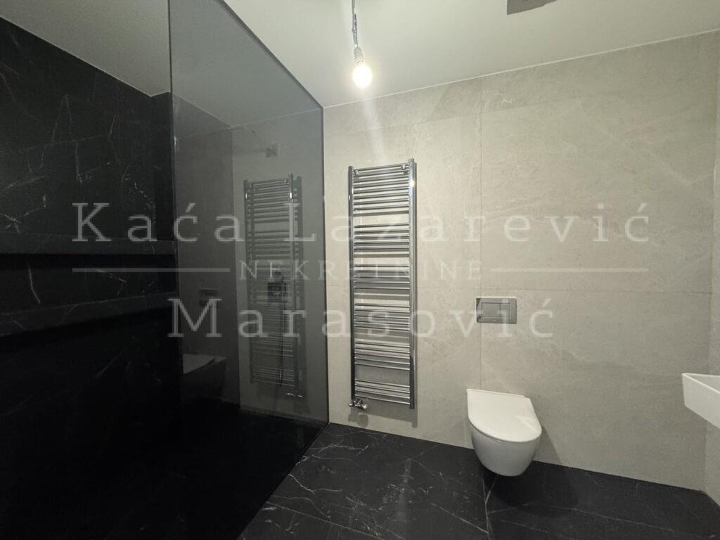 | Luksuzan stan u novogradnji – pametna zgrada sa SMART sistemom Prodaje se luksuzan, useljiv stan u novoj pametnoj zgradi opremljenoj SMART sistemom. Stan se nalazi na drugom spratu (od ukupno šest), dvostrano je orijentisan, a pogled je usmeren ka mirnom dvorištu zgrade. Ukupne površine 135 m², stan se odlikuje vanstandardnim visinama plafona, prostranom terasom, kao i vrhunskim materijalima i završnom obradom: BOSAL sigurnosna vrata, parket prve klase, uvozne sanitarije i hromirane slavine renomiranih proizvođača. Raspored je pažljivo osmišljen i obuhvata prostran dnevni boravak sa kuhinjom i trpezarijom, tri spavaće sobe, dva kupatila i garderober. Iz dnevnog boravka izlazi se na veliku, natkrivenu terasu. Grejanje je etažno, preko toplotnih pumpi (Fan coil sistem), što omogućava visok energetski učinak i komfor tokom cele godine. Zgrada poseduje lift, portirnicu sa obezbeđenjem 24/7, kao i video-nadzor. U podzemnim etažama nalaze se dva nivoa garaža do kojih se pristupa direktno liftom, dok je ulaz u garažu omogućen putem autolifta sa ulice. Uz stan je moguće kupiti dva ili više garažnih mesta, po ceni od 35.000 € (sa uključenim PDV-om) po mestu. Stan je useljiv, a tehnički prijem zgrade se očekuje uskoro.U ponudi je i stan istih karakteristika na prvom spratu. Agencijska provizija u skladu sa opštim uslovima poslovanja. | |