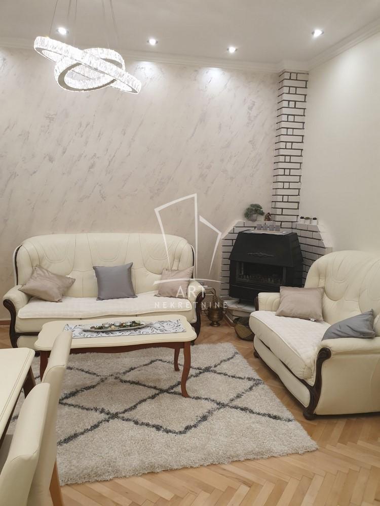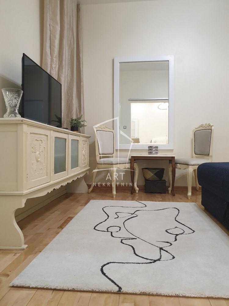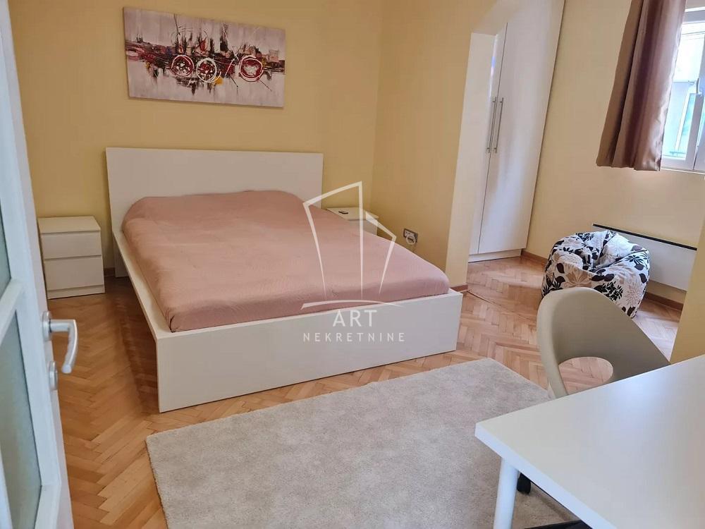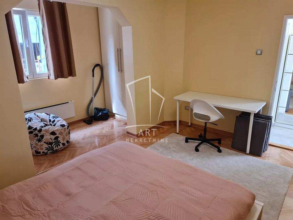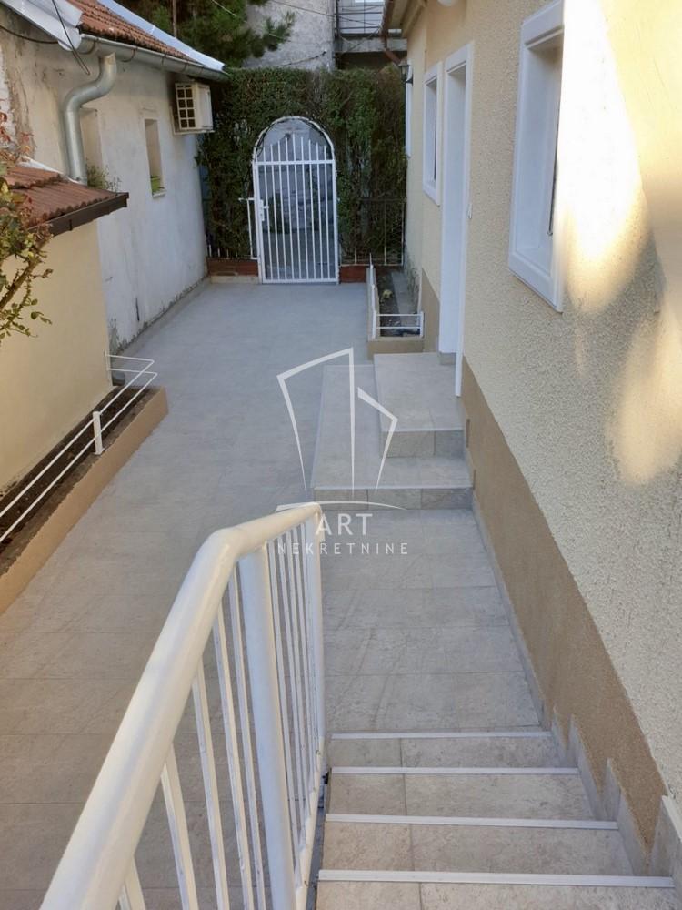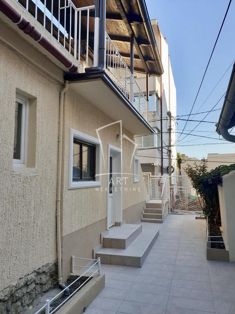 | Stan u dvorišnoj kući veličine 74 m2 (uknjižen na 31m2), na uglu Cara Nikolaja i Mileševske ulice, u samom centru Crvenog krsta, 100 m od Beogradskog dramskog pozorišta (blizina pijace Đeram, Sportski centar Vračar...) Dvorište ima izlaz na dve ulice, na Trg Milene Dravić i Dragana Nikolića, u samom srcu Vračara, sa jedne dok garažom izlazi na Vukice Mitrović, sa druge strane. Zasebno dvorište je veličine 60 m2. Stan se sastoji iz dve spavaće sobe, dnevne sobe sa trpezarijom, kuhinje, dva mokra čvora- kupatilo i toalet. Kuća i stan su detaljno renovirani, sve je potpuno novo i prvi ulazite u stan. U potpunosti je luksuzno opremljen. Jedna velika spavaća soba sa francuskim ležajem i radnim stolom i velikim garderoberima oko 22 m2. Druga soba sa francuskim ležajem, garderoberom i tv komorom oko 16m2. Velika dnevna soba sa kuhinjom, i dva mokra čvora kupatilo u koje se ulazi iz spavaće sobe i poseban toalet kod druge spavaće sobe. Grejanje je na struju, inverter klima i norveški radijatori, izuzetno topao i dobro termički izolovan stan. Stan poseduje pripadajuću garažu od 14 m2, sa ulazom iz ulice Vukice Mitrović. Može se iznajmiti sa garažom i bez nje. Stan poseduje i podrum veličine 12m2. Plaćanje je mesečno uz depozit u visini jedne kirije. U cenu su uračunati svi režijski troškovi, samo ostaje plaćanje računa za potrošenu električnu energiju. Agencijska provizija 50% vrednosti jedne mesečne zakupnine Agent: Olivera Bjekić, br. licence:4178 “Art nekretnine“ d.o.o. Beograd Reg. br.339 011/26-20-734 OB05 . | |