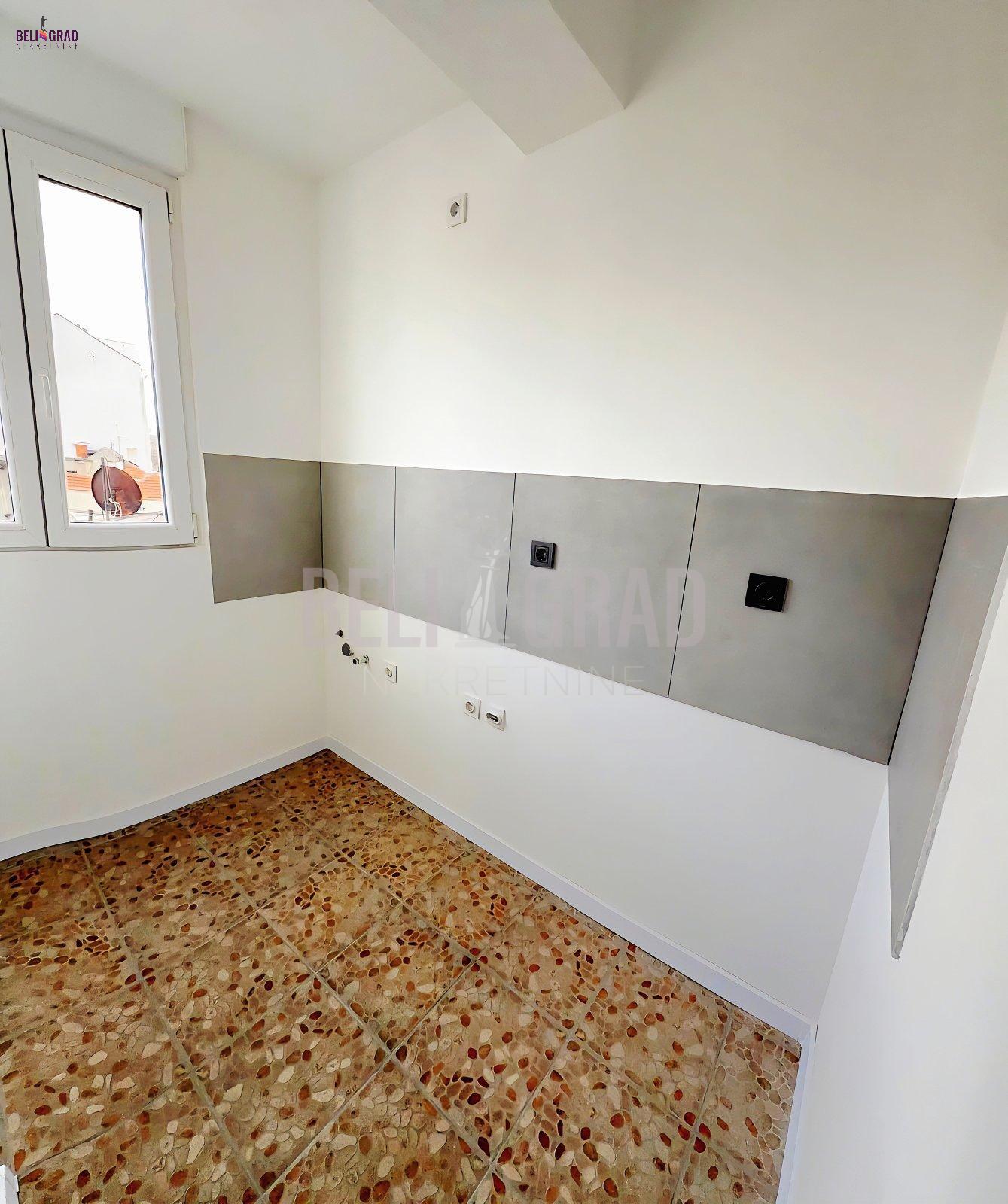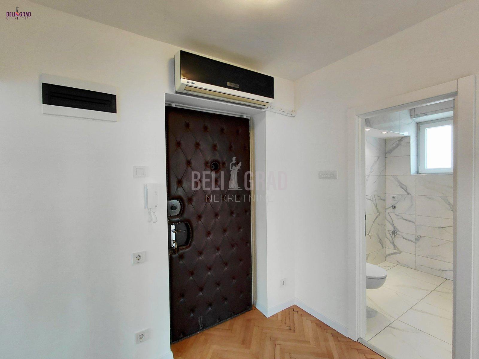 | Stan se nalazi u dobro održavanoj zgradi starije gradnje sa liftom, na petom spratu. Veoma svetao, trostrano orijentisan, uknjižen bez kvadrature, mereno ima 52 kvm. Kvalitetno renoviran stan, zamenjene sve elektro i vodovodne instalacije, kvalitetna spoljna stolarija, postavljen parket, keramika i sanitarije, klima. Grejanje EG,postoji TA pec i klima. Zgrada ima centralno grejanje i moguće je priključenje stana na njega. Odlična investicija kako za život, tako i za izdavanje. Prostorije: ulazni hodnik, dnevna soba, spavaća soba, trpezarija, kuhinja, kupatilo i terasa. Agencijska provizija 2%. | |