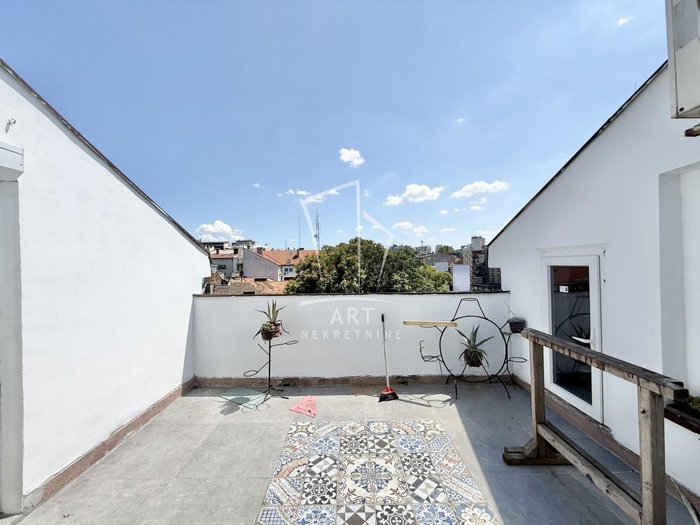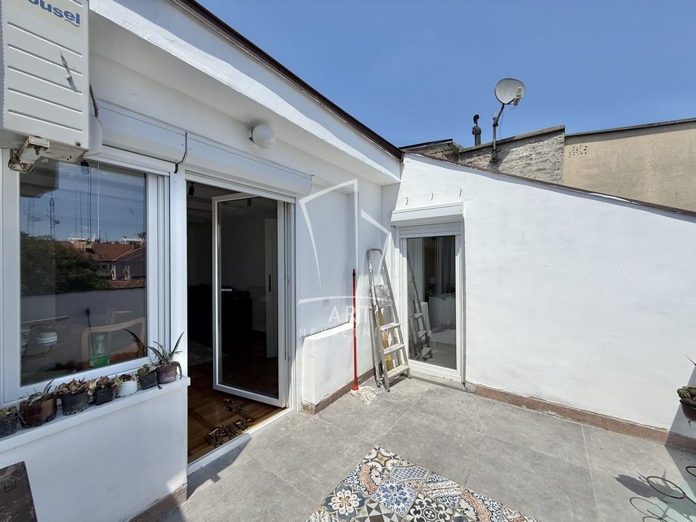 | U ponudi je stan na Slaviji koji se nalazi sam na poslednjem spratu i fizički je podeljen na dve stabene jedinice. Stan je uknjižen na 88 m2 a merena podna površina iznosi 127 m2. Prva stabena jedinica je potpuno renovirana i sastoji se od ulaznog hodnika,velike dnevne sobe,kuhinje,kupatila,dve spavaće sobe i velike terase. Druga stabena jedinica je za renoviranje i potecijalno može da se pretvori u veću garsonjeru i ima svoj mokri čvor. Stan pruža više mogućnosti za dalja investiranja i sa obzirom na atraktvnu lokaciju idealan je za kupce koji imaju svoju viziju za dalja ulaganja. Vredi pogledati Agencijska provizija 2% Agent: Nebojša Kačar br. licence 5962 “Art nekretnine“ d.o.o. Beograd Reg. br.339/26-20-734 NK11 . | |
