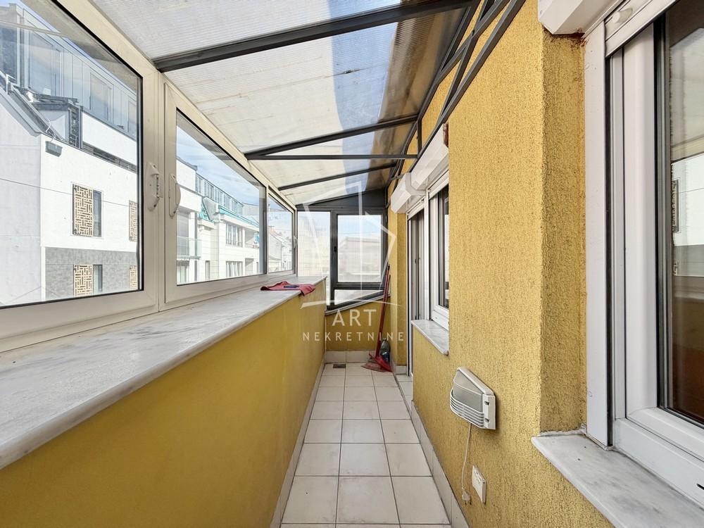 | Kompletno renoviran pre desetak godina,svetao ,ušuškan stan u potkrovlju predratne zgrade kod samog Hrama. Dvorišno orijentisan- samim tim garantuje mir. Ulazni hodnik sa skrivenim walk-in garderoberom, veliki open space koji obuhvata kuhinju i trpezariju sa izlaskom na veliku terasu spojen sa prostranom dnevnom sobom koja izlazi na manju ,zastakljenu terasu,veća i manja spavaća soba,kupatilo sa đakuzijem. Vodovodne i elektro instalacije zamenjene 2012.g kada je renoviran i parket. Uknjižen na vlasnika 1/1,bez tereta i zabeležbi. Retko u ponudi Agencijska provizija 2 % Agent: Dragana Stojanović br. licence:3663 “Art nekretnine“ d.o.o. Beograd Reg. br.339 011/26-20-734 DS06 . | |