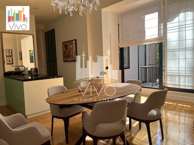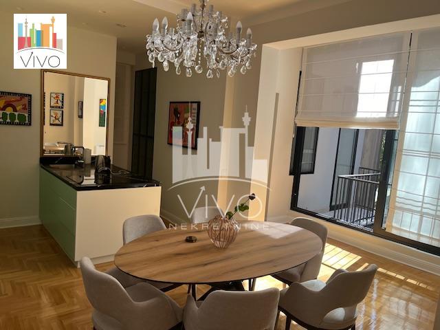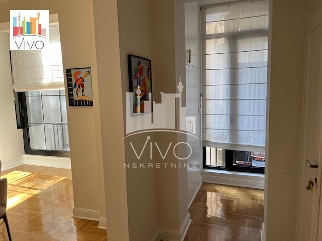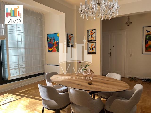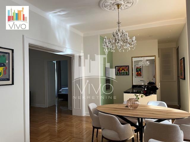 | U predratnoj zgradi sa urednim ulazom, ugao Mlatišumine ulice i Bulevara kralja Aleksandra prodaje se kompletno renoviran salonski stan. Kompletno renoviranje stana je rađeno pre dve godine, zamenjene su sve instalacije, restaurirana unutrašnja i spoljna stolarija (na prozorima su postavljene alu roletne sa elektro podizačima),restaurirana ulazna vrata, nov hrastov parket, kompletno renovirana tri mokra čvora, grejanje i hlađenje stana je preko toplotnih pumpi a u stanu je urađena i centralna ventilacija. Stan je svetao dvostrano orjentisan. Funkcionalan raspored, ulazno predsoblje sa plakarom, dnevna soba sa kuhinjsko trpezarijskim delom, dve spavaće sobe (svaka ima svoje kupatilo), gostinski toalet, dve terase. Stan se prodaje kompletno namešten. Agencijska provizija 2% | |