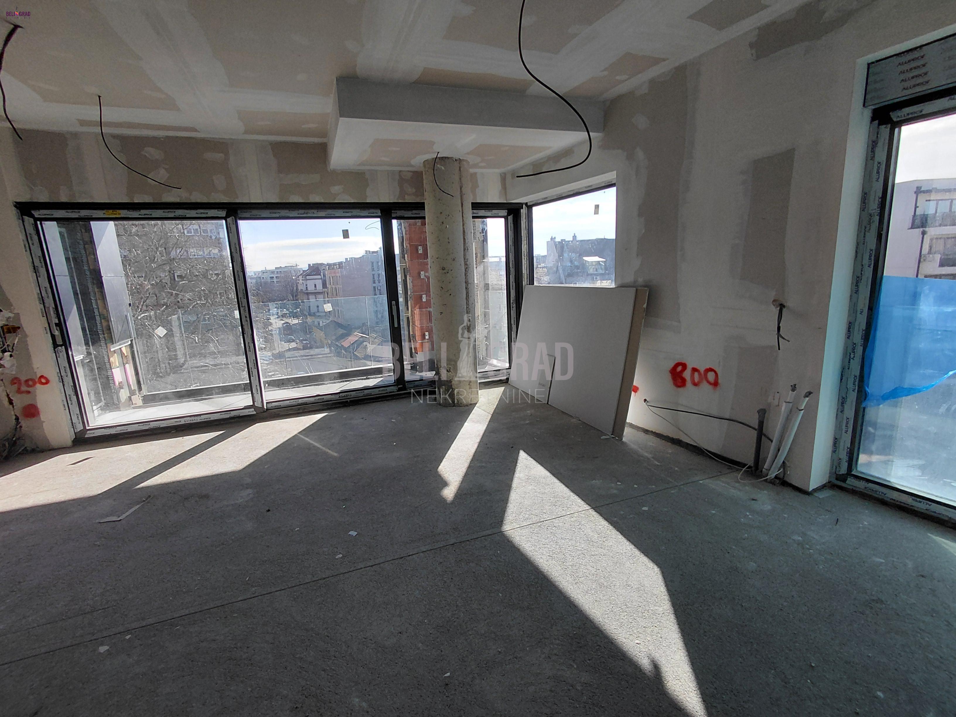 | Vračarski plato, Nevesinjska, trosoban, 88m2, 5/7, terasa, lift, EG, dvostrano orijentisan, Smart home tehnologija, obezbeđenje 24/7, unutrašnji atrijum, garažno mesto. Moguća kupovina putem kredita. Vrhunski projektovan i luksuzno dizajniran trosoban stan, na ekskluzivnoj lokaciji, na uglu Makenzijeve i Nevesinjske ulice. Ima savršeno odabranu poziciju na petom spratu, u objektu sa ukupno sedam spratova. U svojoj strukturi, stan čine: ulazni hol, prostran dnevni boravak sa trpezarijom i kuhinjom, velika terasa, dve spavaće sobe, kupatilo, perionica i toalet. Zahvaljujući dvostranoj orijentaciji i velikim staklenim površinama, stan je obasjan sa puno prirodnog svetla. Tome doprinosi unutrašnja visina od 280cm i velike staklene površine u punoj visini. Prostran dnevni boravak, sav u staklu, kao i velika terasa, omogućavaju potpuno otvoren, panoramski pogled prema Hramu Sv. Save i velikom delu Vračarskog platoa. U opremanju enterijera koriste se prirodni materijali najviše klase i oprema renomiranih svetskih proizvođača. Svi stanovi imaju Smart home tehnologiju tj. automatsko i daljinsko upravljanje svim kućnim sistemima, kao i savremeni sistem grejanja i hlađenja koji je ekološki, ekonomičan i bešuman. Prostrani i luksuzno dizajnirani ulazni hol, stepenište i hodnici garantuju vlasnicima stanova potpunu privatnost i bezbednost, uz lobi sa kontrolisanim pristupom 24/7, podzemnom garažom i privatnim unutrašnjim dvorištem. Agencijska provizija 2% | |