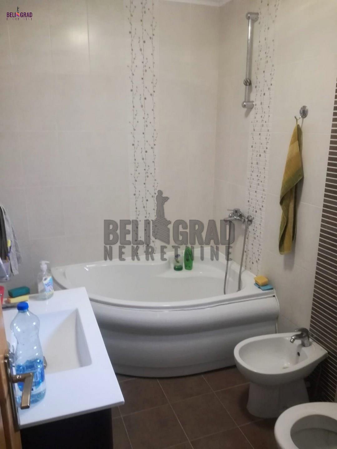 | OPIS NEKRETNINE: Kuća je završena 95%, fasada, izolacija, podovi, keramika, parketi, podno grejanje u prizemlju, naspratu radijatori, centralni bojler, izvučeno i za solarno napajanje, potrebno ugraditi kotao za grejanje. Kuća je modernog projekta, po potrebi moguće je adaptirati u dve stambene jedinice. Svaka soba ima terasu (lođu), struja trofazna, septička jama. Kuća se nalazi u blizini okretnice busa 706. Očekjuje se nova saobraćajnica koja će povezivati taj deo naselja ka Novoj Pazovi i Novim Banovcima. Plac 5 ari, oko 22 m širine ka ulici, plac 1/1(nije u suvlasničkim odnosima),plaćena prenamena zemljišta. Kuća se nalazi 3 km od auto puta BG-NS. PROSTORIJE: PRIZEMLJE: Predsoblje, dnevni boravak sa kuhinjom i trpezarijom, spavaća soba, kupatilo, toalet, terase, ostava, garaža. SPRAT: Dnevni borava, 2 spavaće sobe, stepenice za sobu na tavanu, kupatilo, toalet. Agencijska provizija 2%. | |