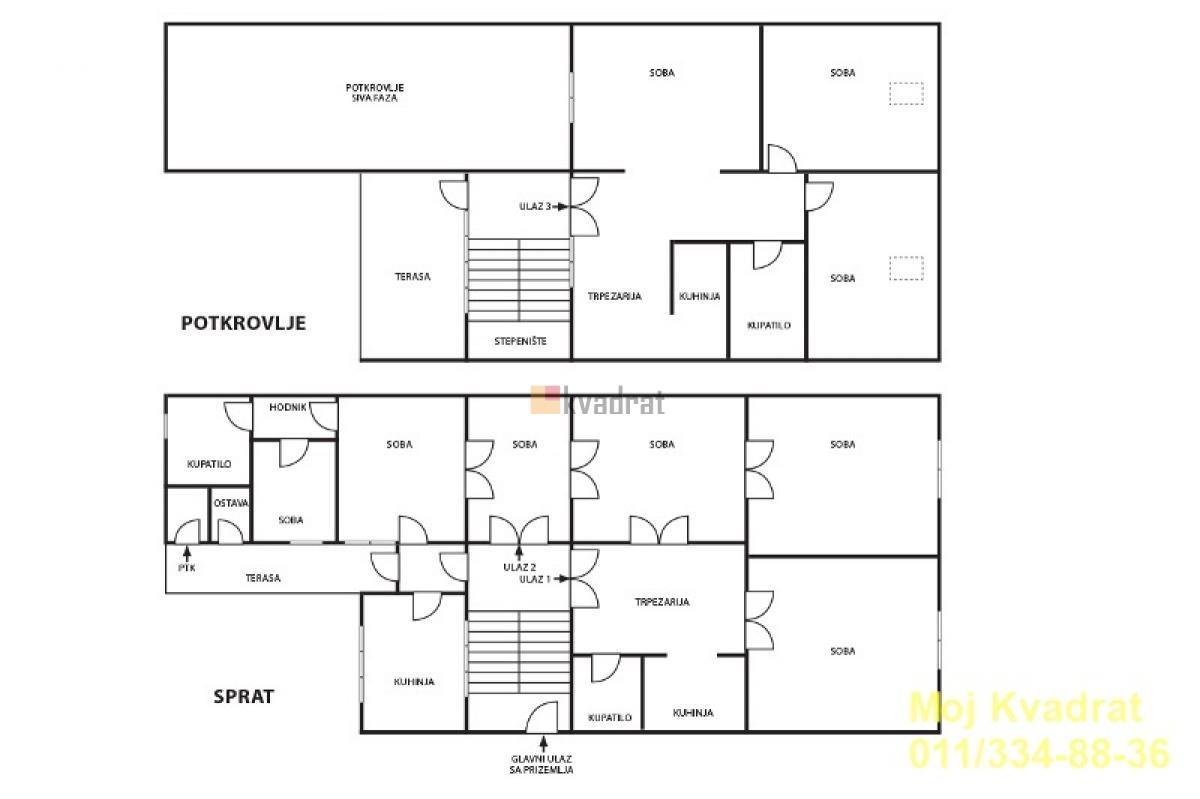 | Zemun, centar (Magistratski trg) - Gospodska vertikala kuće, 7.0, 170m2, dve terase, PR+2, EG, interfon, podrum U ponudi za prodaju vertikala kuće salonskog tipa u srcu Zemuna. Smeštena je na Magistratskom trgu, glavnoj pešačkoj zoni između Glavne ulice i Zemunskog keja. Kuća je u izvornom stanju i sastoji se od prizemlja, prvog sprata i potkrovlja. U prizemlju kuće nalazi se lokal. Na prvom spratu nalazi se četvorosoban stan koji se sastoji od predsoblja, prostrane dnevne sobe, tri spavaće sobe, trpezarije, dve kuhinje, dva kupatila i terase. Kupatila su renovirana. Visina plafona iznosi skoro 3m, dok visina štokova vrata iznosi 2.60m. Potkrovlje se sastoji od dnevnog boravka, dve spavaće sobe, kuhinje, trpezarije, kupatila i terase. Tavanski prostor u produžetku potkrovlja oko 40m2. Poseduje i pripadajući podrum. Vertikala kuće je autonomna sa zasebnim ulazom sa stepeništem. Dvostrano je orijentisana, jednim delom gleda ka Gardošu, a drugim delom ka Magistratskom trgu. Fasada je dekorativnog tipa. Jedna od prednosti ove nepokretnosti jeste arhitektonsko rešenje kojim je omogućeno da se naprave tri potpuno odvojene stambene jedinice. Pregradom jednog zida na prvom spratu dobio bi se jedan dvosoban i jedan trosoban stan. Tavanski prostor moguće je pripojiti potkrovlju. U neposrednoj blizini je pijaca i veliki broj radnji mešovite robe. Uknjižena bez upisane kvadrature, po poreskom rešenju ima 170m2. Agencijska provizija 2% Agent Svetlana Todorov 066/239-141 (licenca br.6305) Interfon, Salonski stan. Izvorno stanje. Stara gradnja. Gradska kanalizacija | |