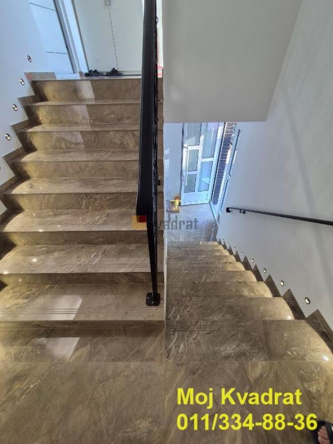 | Zemun, Ćukovac - Vasilija Vasilijevića 4.0, 105m2, terasa, 1/1, EG/podno, inverter klime, ostava, parking U ponudi komforan četvorosoban stan, luksuzne gradnje, u najlepšem delu starog Zemuna, na Ćukovcu. Nalazi se na prvom spratu u zgradi koja ima samo dve etaže. Stan je svetao, trostrano orijentisan i odlično izolovan (tavan je izolovan tečnom pur penom). Stan je izgrađen adaptacijom stare zgrade koja je pod zaštitom države. Spada u novogradnju, s obzirom da je po projektu bila predviđena totalna rekonstrukcija. Prostorije: komforan dnevni boravak, tri spavaće sobe, prostrane kuhinja i trpezarija, dva kupatila. Grejanje u stanu je podno sa toplotnim pumpama, a opremljen je i inverter klimama. Urađena je dekorativna rasveta sa spuštenim plafonima. Keramika je vrhunskog kvaliteta, kao i oprema u kupatilima. Iako je stan sa kosinama, visina ne predstavlja problem, jer je najniža kota u spavaćim sobama na 1.4m. Uz stan ide i parking mesto, obezbeđeno u dvorišnom delu zgrade, gde se nalaze i nove ostave za stanare. Uknjiženo je 57m2, a za ostatak od 47m2 postoji građevinska dozvola. Agencijska provizija 2% Klima, Ostava Gradska kanalizacija | |