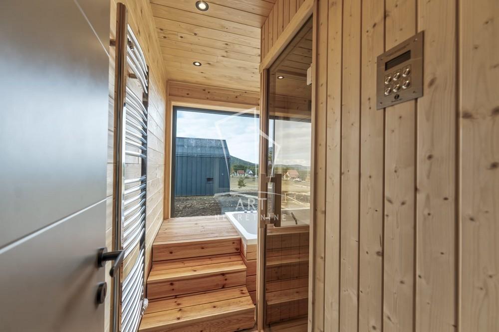 | Predstavljamo vam ekskluzivnu kuću u modernom kompleksu , kompletno opremljenu sa wellness sadržajem u naselju Šainovci, jednom od najmirnijih i najpoželjnijih delova Zlatibora. Kuća je smeštena na posebnoj parceli površine 4,5–5 ari, a površina objekata je 100m2, raspoređena na dva nivoa. Prizemlje: – Elegantni open space dnevni boravak sa kuhinjom i trpezarijom – Wellness soba sa saunom i đakuzijem – Kupatilo – Prostrana terasa sa pogledom na prirodu Sprat: – Dve spavaće sobe – Toalet – Terasa Oprema i karakteristike: – Skandinavski dizajn sa naglaskom na minimalizam i toplinu – Etažno grejanje na struju (podno grejanje u prizemlju, a radijatori na spratu) – Italijanska keramika prve klase – Sanitarije u sofisticiranoj antracit boji – Tarkett parket – Aluminijumska stolarija – Više od 40 m² staklenih površina pruža obilje prirodne svetlosti – Smart home sistem – Dva privatna parking mesta uz svaku kuću – Behaton popločanje ispred objekata – Parcela okružena tujama stvara osećaj privatnosti – Održavanje kompleksa Naselje se nalazi na 12 km od centra Zlatibora, svega 5 minuta vožnje od ski centra Tornik, a takođe u neposrednoj blizini se planira i izgradnja “Zlatnog grada”. Planirani rok završetka radova je proleće 2026. godine. Bez provizije za kupca. Agent: Marija Mitrašinović, br. licence 5862 “Art nekretnine“ d.o.o. Beograd, Reg. br. 339 011/26-20-734 . | |