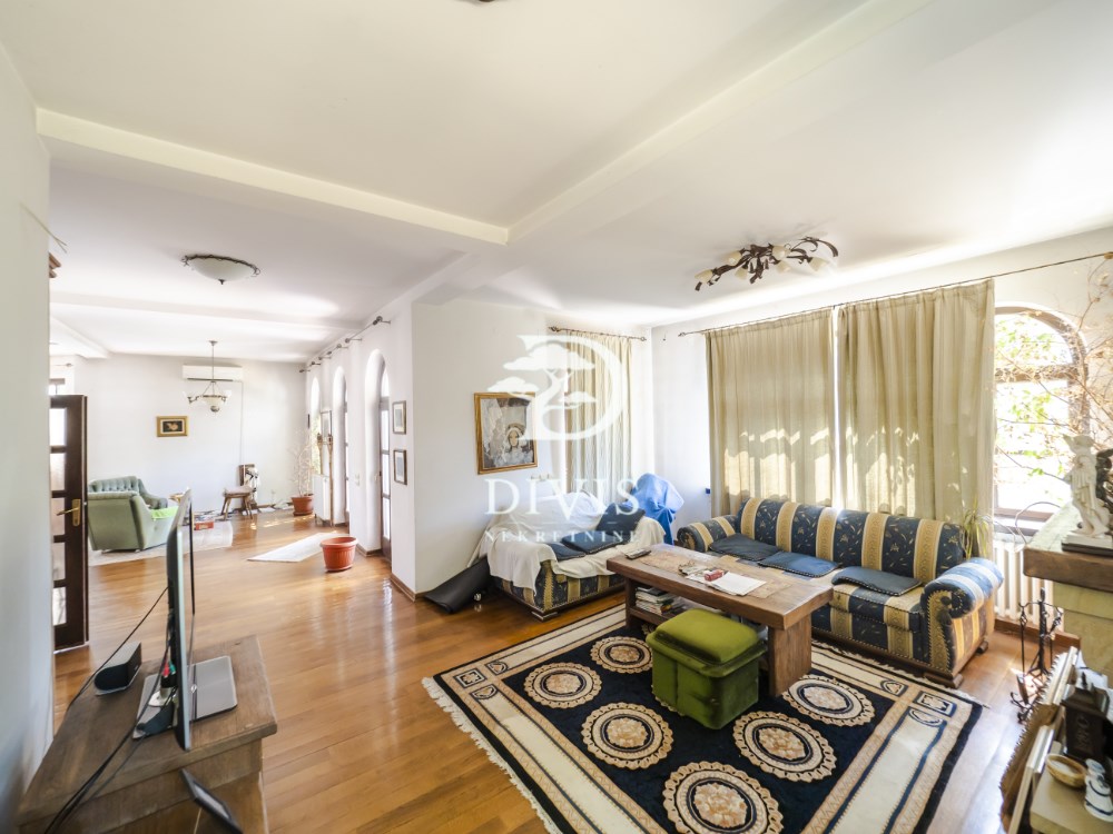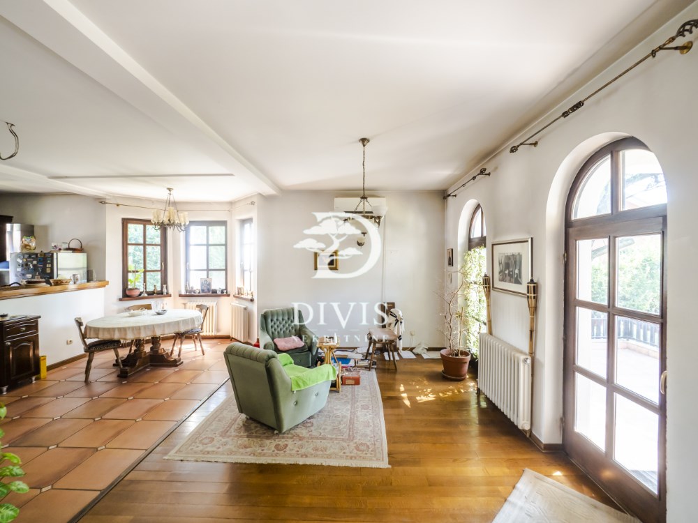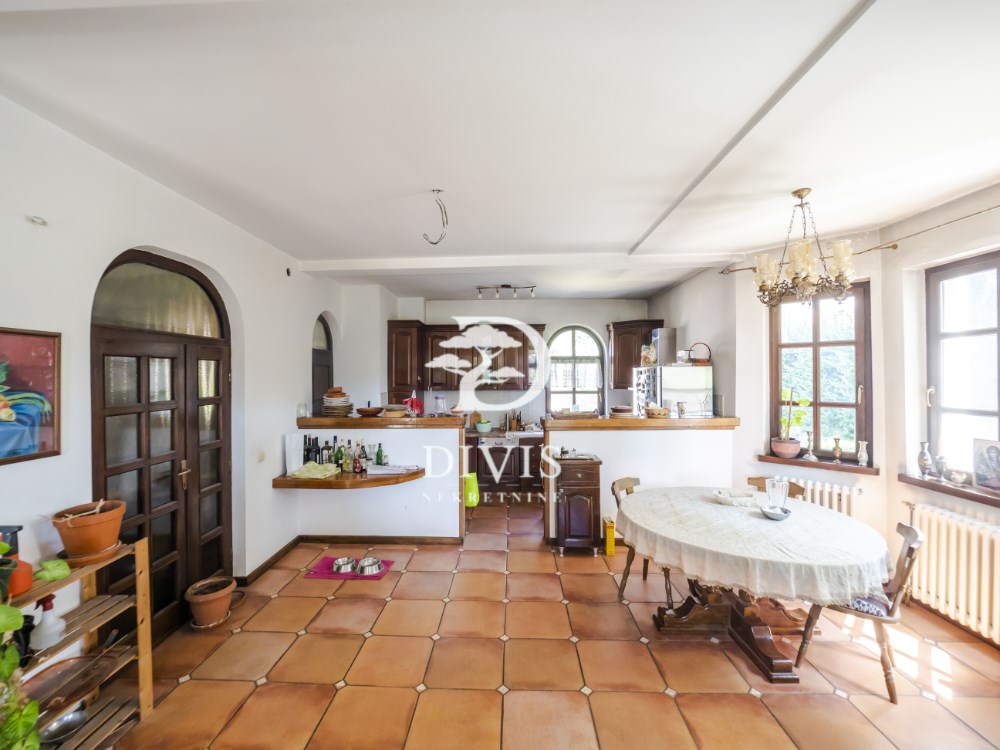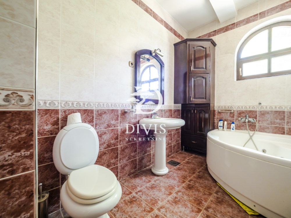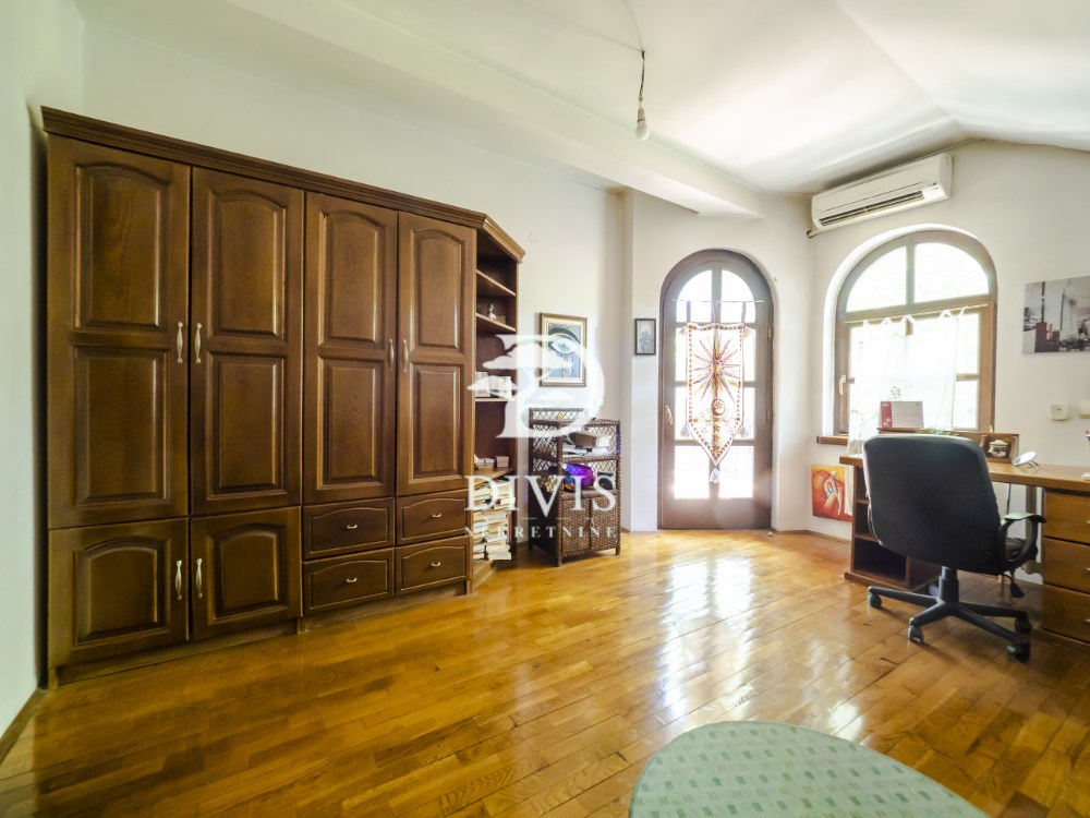| rodajemo odličnu kuću na Zvezdari u Gorenjskoj ulici na Konjarniku. Nalazi se na ogradjenoj parceli ukupne površine 19, 51 ari. Kuća je jako kvalitetne gradnje iz 2002. godine, spratnosti Po+Pr+1+2. Prvi nivo - podrum (suteren) ukupne površine od 99m2 se sastoji od prostora za rekreaciju, tri ostave, toaleta i tehnička sobe (kotlarnica) Drugi nivo - prizemlje ukupne površine od 147 m2 se sastoji od ulaznog hodnika, dnevnog boravka, kuhinje sa trpezarijom, spavaće sobe, kupatila i terase. Prvi sprat ukupne površine od 111m2 se sastoji od hodnika, dnevne sobe sa kuhinjom, tri spavaće sobe, dva garderobera i dve terase. Potkrovlje ukupne površine 35m2 se sastoji od sobe koja je planirana za hobi, bilijar ili slično. Grejanje je regulisano na tri načina. Električni kotao, na gas i grejanje na čvrsto gorivo. Takodje je i napravljen veliki kamin u dnevnom boravku. Postoji i mogućnost priključka na centralno grejanje. Prilikom izgradnje, korišćeni su najkvalitetniji materijali poput drvene stolarije, prirodnog kamena, hrastovog parketa, unutrašnje drvene stolarije. Pored kuće nalazi se i pomoćni objekat ukupne površine 106 m2 koji se sastoji iz dva nivoa i nije uknjižen. Prvi nivo se sastoji od dva velika garažna mesta sa zasebniim rolo vratima na daljinsko upravljanje i ostave površine 47m2, dok se na drugom novu nalazi kompletno nova i sredjena stambena jedinica površine 59m2 i sastoji se od ulaznog hodnika, dnevnog boravka sa kuhinjom i trpezarijom, male spavaće sobe i kupatila. Sa prednje strane dvorišta se nalazi kolski ulaz preko kapije na daljinsko upravljanje sa parking prostorom koji je popločan behatonom, kapaciteta do šest automobila i još dva garažna mesta. Dvorište je prostrano i lepo sredjeno sa puno zelenila. Uknjiženo. Posrednička naknada je u skladu sa Opštim uslovima poslovanja Posrednika DIVIS NEKRETNINE DOO | |