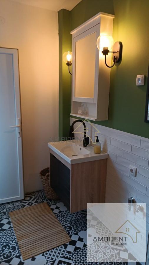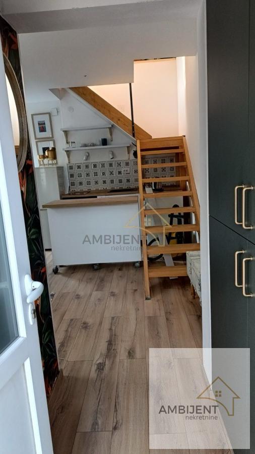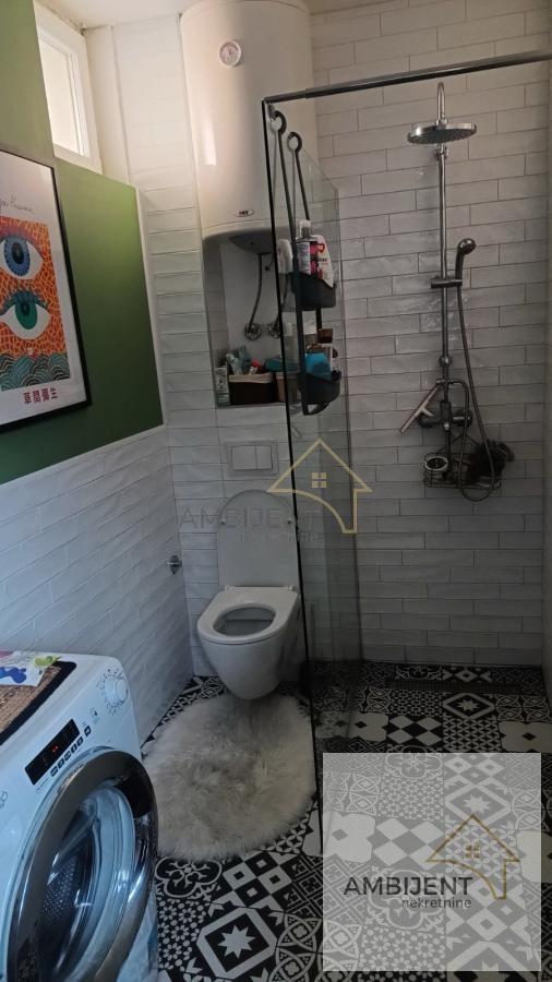 | ID 799 Kontakt: Za više informacija ili dogovor oko razgledanja, pozovite 0643255742. - Kuća je na dva sprata. Nalazi se blizu osnovnih škola, prodavnica, kozmetičkih salona, kao i blizu autobuskih stajališta tako da je povezanost sa ostatkom grada jednostavna. - Na prvom spratu se nalazi ulazni hodnik, manja dnevna soba, kuhinja i kupatilo koje je opremljeno vrlo neobičnim i autentičnim pločicama, tuš kabinom i nesvakidašnjim sanitarijama. - Drvenim stepenicama se penjete u deo koji je odvojen i planiran kao spavaći blok. Zagarantovan mir i tišina, ono što je potrebno za dobar odmor. Na ovom spratu se nalaze i krovne ostave koje su neobično i praktično rešenje za odlaganje stvari. - Prilikom kupovine kuće dobijate kuhinju opremljenu na moderan način, ravnu ploču, ugradni šporet, crnu sudoperu i sve to u kombinaciji sa pločicama koje čitavom prostoru daju posebnu draž. - Kuća ima izlaz na terasu sa drvenom ogradom i može se srediti tako da se stopi sa već neobičnim enterijerom. Agencijska provizija je 2% od kupoprodajne cene. Broj u registru posrednika: 1667.Mašina za sudove, Veš mašina, Frižider, Šporet, Plakari/Ormani, Sudopera, Kuhinjski elementi, Internet, Telefon, Kablovska, Klima, Odmah useljiv | |
