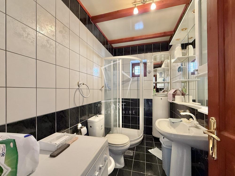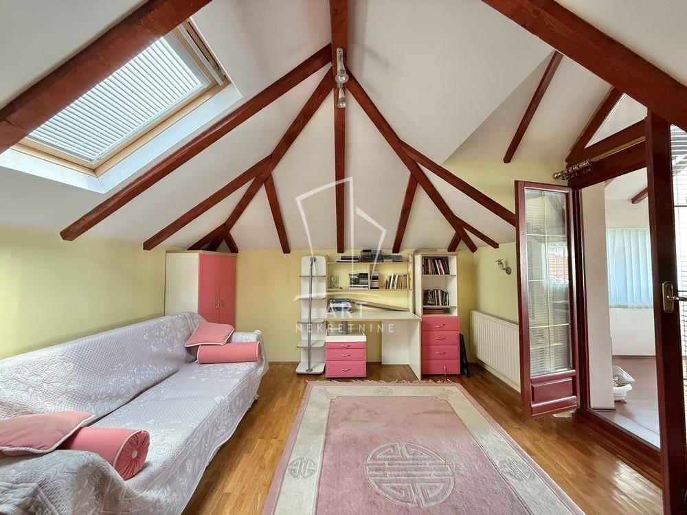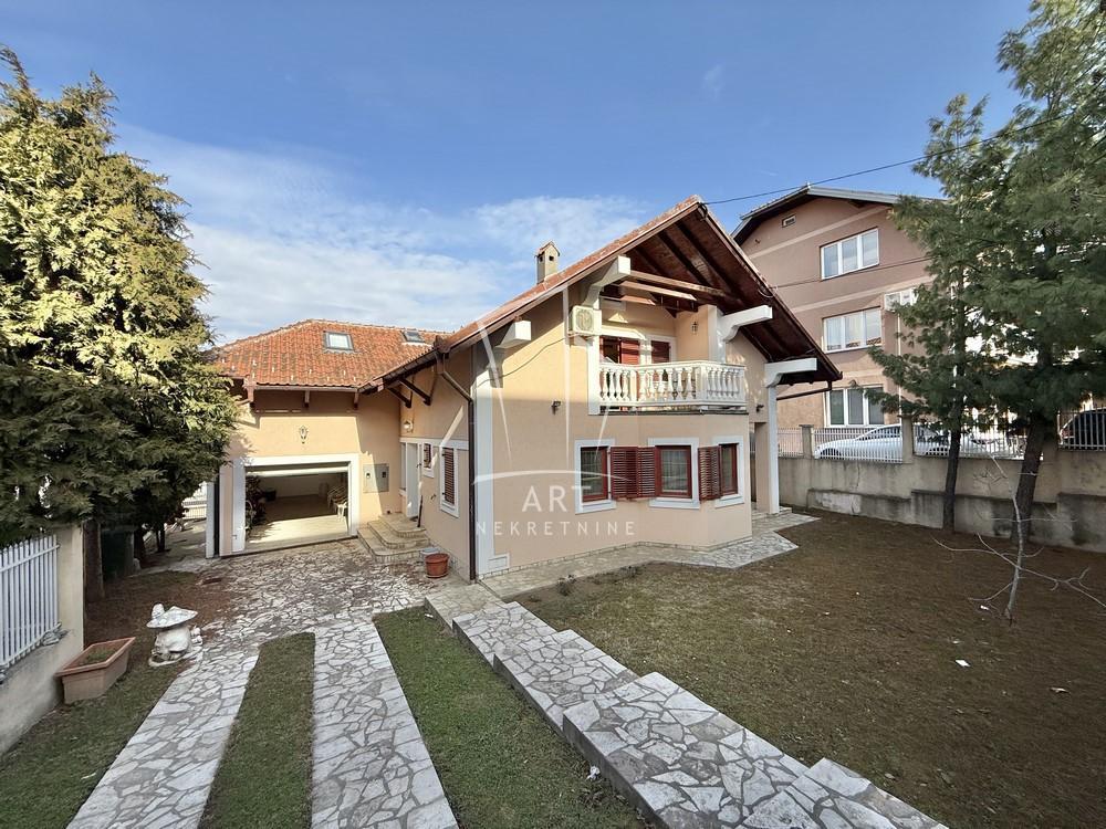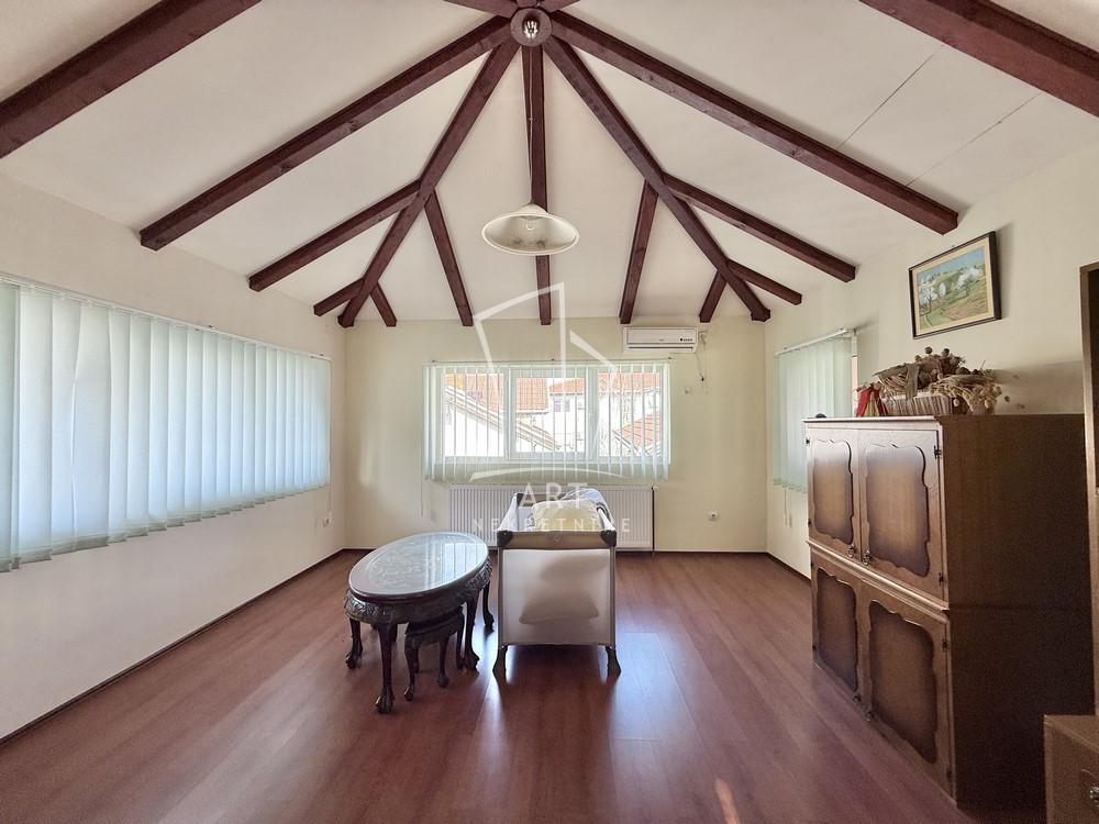 | Uknjižena kuća 1/1, vrlo interesantnog koncepta, neto grejne površine 280m2, bruto 359m2, bez ulaganja. PR - predvorje, gostinski toalet, veliki dnevni boravak sa kaminom, trpezarija i kuhinja, jedna velika i jedna manja spavaća soba i kupatilo. Iz dnevnog boravka je izlaz na jednu od terasa. Na sledećem nivou, na koji se dolazi prelepim drvenim stepeništem, nalazi se 5 soba, veliko kupatilo i dva balkona. Odlična kako za život tako i za kombinaciju sa biznisom. Pored garaže mogućnost za parkiranje još nekoliko automobila u dvorištu . Dvorište 4.8 ari, lepo uređeno, sa dodatnim mestom za parkiranje. Garaža sa ostavom i kotlarnicom sa rolo vratima. EG na gas i struju, gradska kanalizacija. Blizina nekoliko gradskih linija, škole, marketa, kao i brzog izlaza na autoput. Agencijska provizija 2% Agent: Smilja Stojadinović br. licence 3006 “Art nekretnine“ d.o.o. Beograd. Reg. br.339 011/26-20-734 . | |