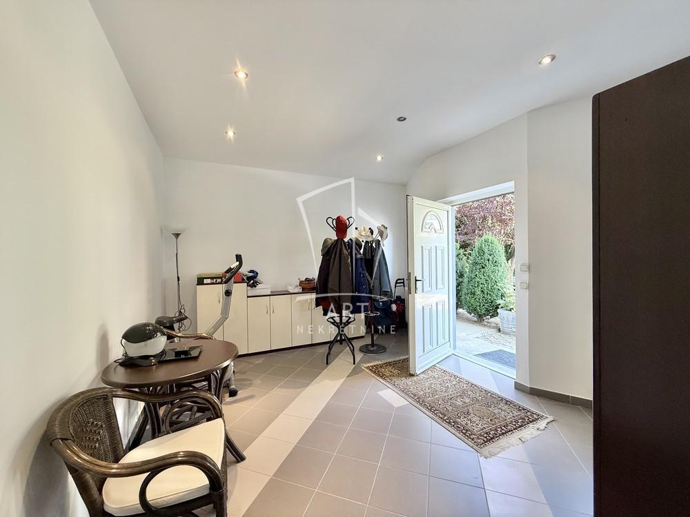 | U ponudi je uknjižena kuća čija je ukupna gradjevinska površina 438m2. Sastoji se od 3 nivoa. Prvi, prizemni nivo sastoji se od tri prostorije, kuhinje i kupatila. Mogućnost izdavanja kao stambeni ili poslovni prostor. Drugi nivo sastoji se od velikog dnevnog boravka, prostrane trpezarije, kuhinje, odvojene spavaće sobe, kupatila, toaleta i velike verande. Treći nivo sastoji se od četiri sobe, kupatila, toaleta i terase. Svaki nivo može da funkcionise kao samostalna jedinica. Takodje sastavni deo kuće je ostava, kotlarnica ulazni antre i unutrašnje stepenište. Kuća je kvalitetne gradnje, odlično održavana i ne zahteva dodatno ulaganje. Nalazi se na 5 ari placa koji je odlično pozicioniran. Blizina svog potrebnog sadržaja a opet je izolovan od buke i ima dosta zelenila sto pruža mogućnost za jedan miran i udoban život. Parking mesta u dvorištu. Kuća je uknjižena, bez tereta i zabeležbi. Topla preporuka. Za sve dodatne informacije stojimo na raspolaganju. Agenc. provizija 2% Agent: Darko Slivar br. licence 4162 “Art nekretnine“ d.o.o. Beograd. Reg. br.339 0112620734 DS . | |