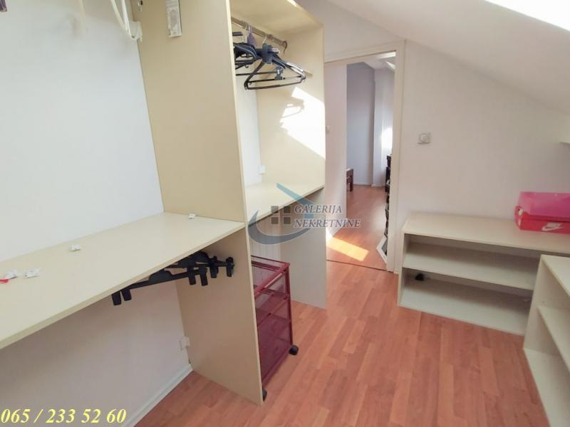 | 3.5, 68m2 (terasa), CG, 4/4, lift, klima, interfon, internet, telefon, ktv. Mirna, jednosmerna ulica Marka Oreškovića se prostire od ulice Dvadesetprve divizije do Bulevara kralja Aleksandra, presecajući Dimitrija Tucovića. Ova lokacija je vrlo popularna na tržištu nepokretnosti. Infrastrukturno je kompletno pokrivena, pa se u okruženju nalazi sve što je potrebno za život, uključujući i brzu saobraćajnu vezu sa svim delovima grada. Nepokretnost se nalazi u delu ulice bliže Bulevaru. U prilici smo da vam ponudimo specifičan i vrlo šarmantan dupleks na poslednjoj etaži održavane četvorospratnice, sa liftom izgrađene 2005. godine. Vrlo je funkcionalan, sa tri spavaće sobe, od kojih se najmanja nalazi na galeriji, trenutno u funkciji garderobera. Dnevni boravak je objedinjen sa trpezarijom i kuhijnom u modernom open space stilu. Dragulj stana je velika terasa kao stvorena za uživanje. Stan je orijentisan suprotno od ulice, pa je tih i izuzetno svetao. Nedavno je kompletno renoviran i estetski osmišljen sa puno ukusa, pa nisu neophodna dodatna ulaganja. Grejanje je centralno. Izdaje se kompletno namešten i opremljen. Zakupac plaća komunalije i ostale troškove koje iznose ukupno oko 120 EUR. Depozit je u iznosu od jedne mesečne zakupnine. Kućni ljubimci nisu dozvoljeni. Od prostorija: Donji nivo – hodnik, kupatilo, spavaća soba, dnevni boravak objedinjen sa trpezarijom i kuhinjom, terasa. Gornji nivo - (galerija) – spavaća soba, garderober (spavaća soba). Uknjiženo na 68m2 sa terasom. Agent: Isak Marčetić 064/167 53 81 R-ID: #3699 Interfon, Internet, Telefon, Kablovska, | |