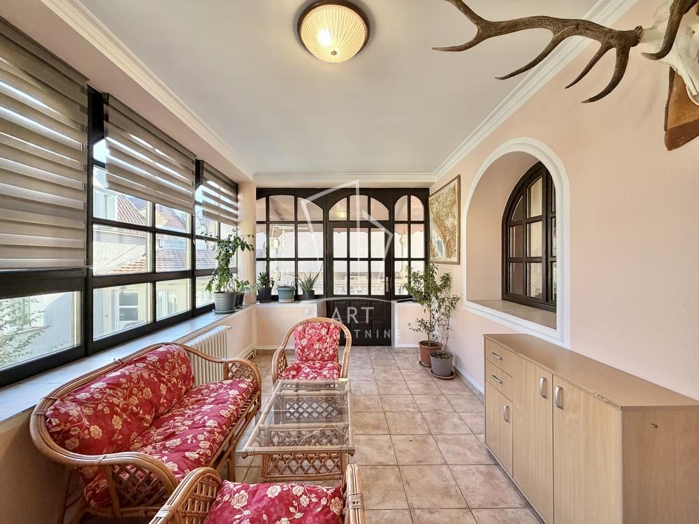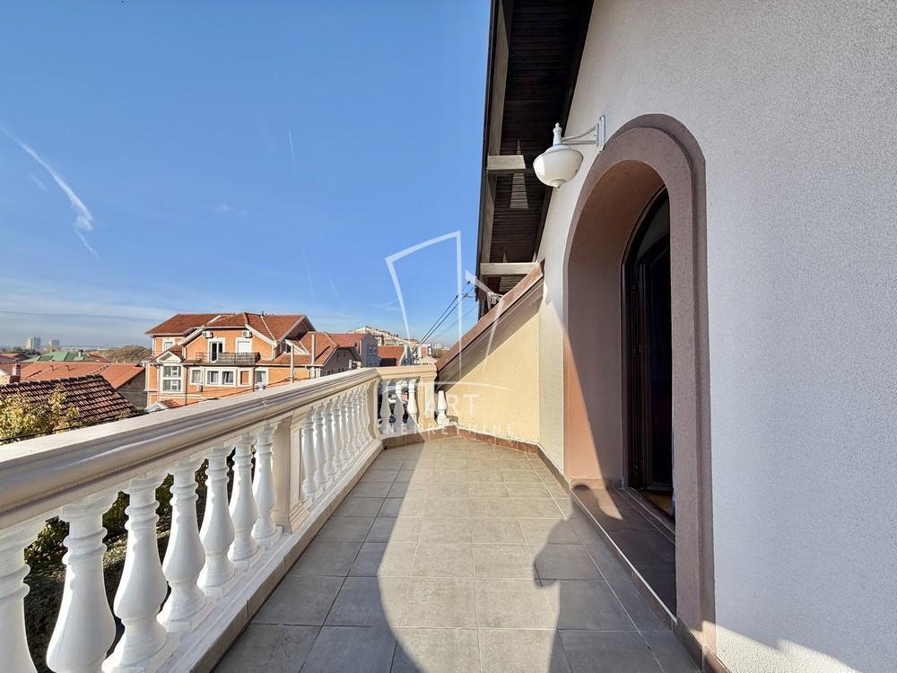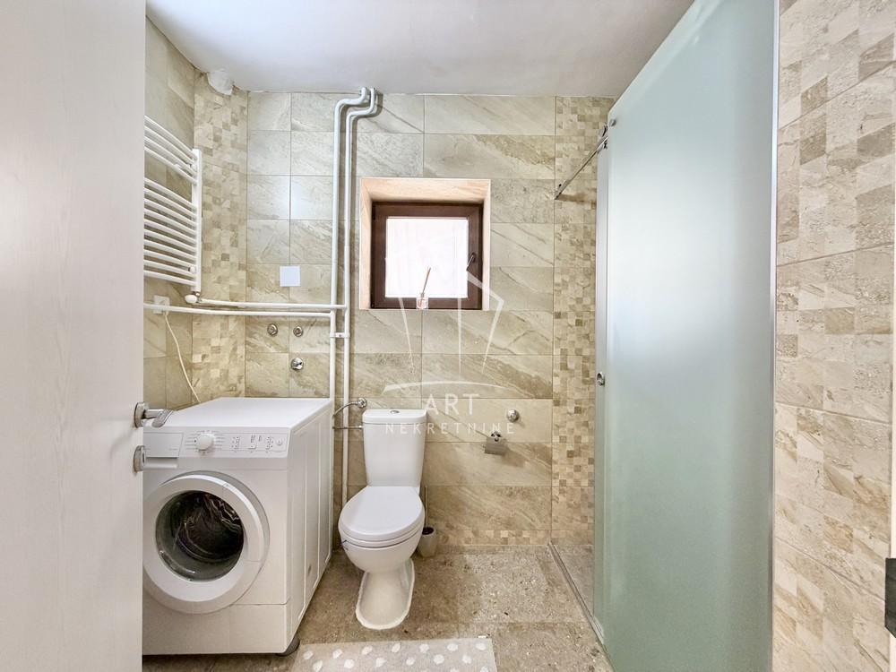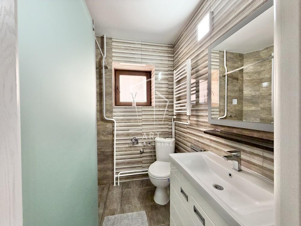 | Lep, prostran stan na 2 nivoa u privatnoj kući. Kuća se nalazi na odličnoj lokaciji u blizini Medak II i Medak III, naselja Braće Jerković. Blizina auto puta, prevoza autobuskog i trolejbuskog saobraćaja (na 100 m od linija GSP, 29, 20, 50, 18), škole, pijace, super marketa Lidl i Maksi i ostalih prodajnih objekata. Stan je odličnog rasporeda, trostrano orijentisan, svetao, potpuno namešten sa novim nameštajem, kompletna bela tehnika, 3 terase, 3 mokra čvora. I nivo - predsoblje, kuhinja, veliki dnevni boravak sa trpezarijom (40 kvm) i izlaz na terasu od 10 kvm, spavaća soba, kupatilo, natkrivena terasa 15 kvm; II nivo - predsoblje, velika dnevna soba 30 kvm, dve spavaće sobe, kupatilo, terasa 10 kvm. Mogućnost iznajmljivanja parking mesta po ceni od 50eur. Agencijska provizija iznosi 50% vrednosti jedne mesečne zakupnine. Agent: Dejan Piljak br. Licence: 4787 “Art nekretnine“ d.o.o. Beograd Reg. br. 339 011/26-20-734 DP11 . | |