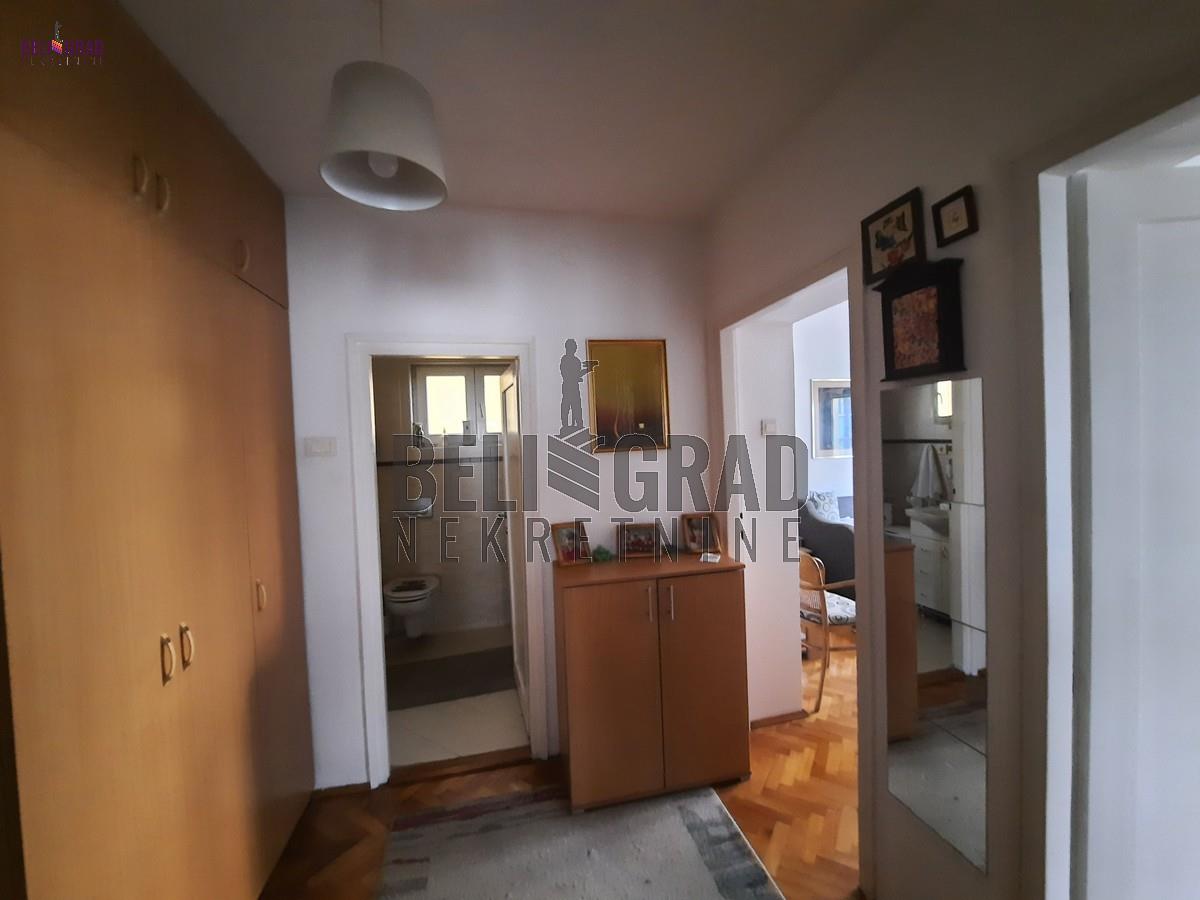 | Veoma lep, dvostrano orijentisan stan u dobro održavanoj zgradi, 61 m2 korisne površine plus terasa. Stan je izvorno dvosoban, adaptibilan u dvoiposoban. Stan je kompletno renoviran pre desetak godina, zamenjen su sve vodovodne i elektro instalacije, nalazi se u delu Zvezdare koji se naziva Slavujev venac, na granici sa opštinom Palilula, u maloj i mirnoj ulici sa dosta zelenila. Sve prostorije u koje se ulazi iz centralno pozicioniranog predsoblja su prostrane i funkcionalno raspoređene, što je tipično za gradnju iz posleratnog perioda. Infrastruktura je jako razvijena, u blizini su osnovna škola, vrtići, prodavnice, pijaca, više linija javnog prevoza, BG voz. Idealan za kvalitetan život u mirnom okruženju, a u neposrednoj blizini centra i mnogih gradskih dešavanja. Prostorije: ulazni hodnik, kuhinja sa trpezarijom, ostava, dve spavaće sobe, kupatilo, terasa, podrum Agencijska provizija 2% | |
