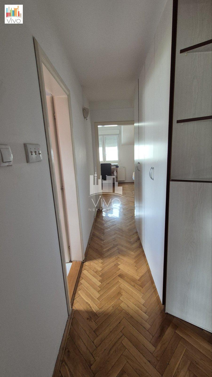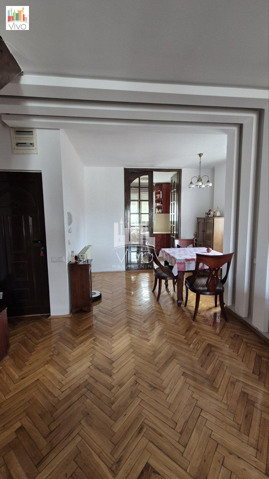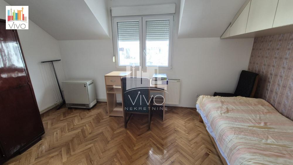 | U neposrednoj blizini Đeram pijace u mirnom delu ulice, prodaje se očuvan i održavan stan. Predratna zgrada na kojoj je urađena nadogradnja 2003.godine. Stan je u dva nivoa, prvi nivo je drugi sprat, drugi nivo je potkrovlje sa galerijom koja je pretvorena u zasebnu sobu površine 16m. Na prvom nivou je prostrana dnevna soba, trpezarija, kuhinja sa prirodnom ventilacijom, gostinski toalet. Na drugom nivou su dve spavaće sobe i kupatilo. Stan je svetao, trostrano orjentisan. Grejanje je na struju, EG, TA peć i dve inverter klime. Urađena je spoljna izolacija, kvalitetna krovna izolacija, PVC stolarija, sigurnosna vrata. Dobra povezanost sa svim delovima grada, blizina linija gradskog prevoza, pijace, marketa, škole, obdaništa. Agencijska provizija 2% | |