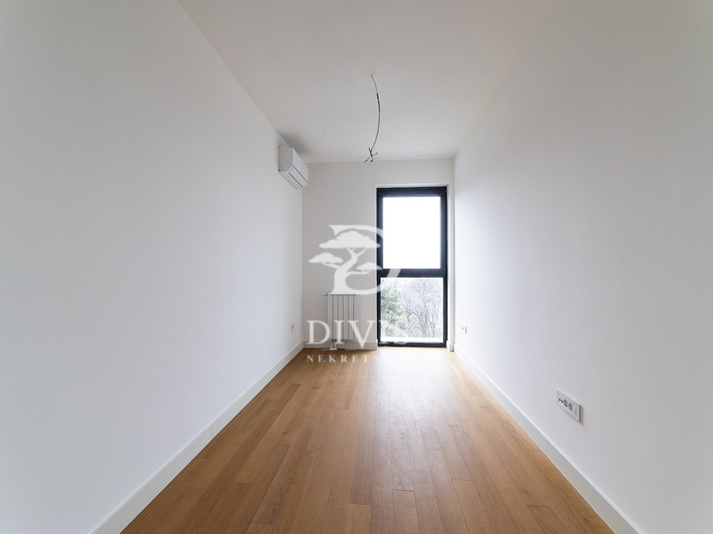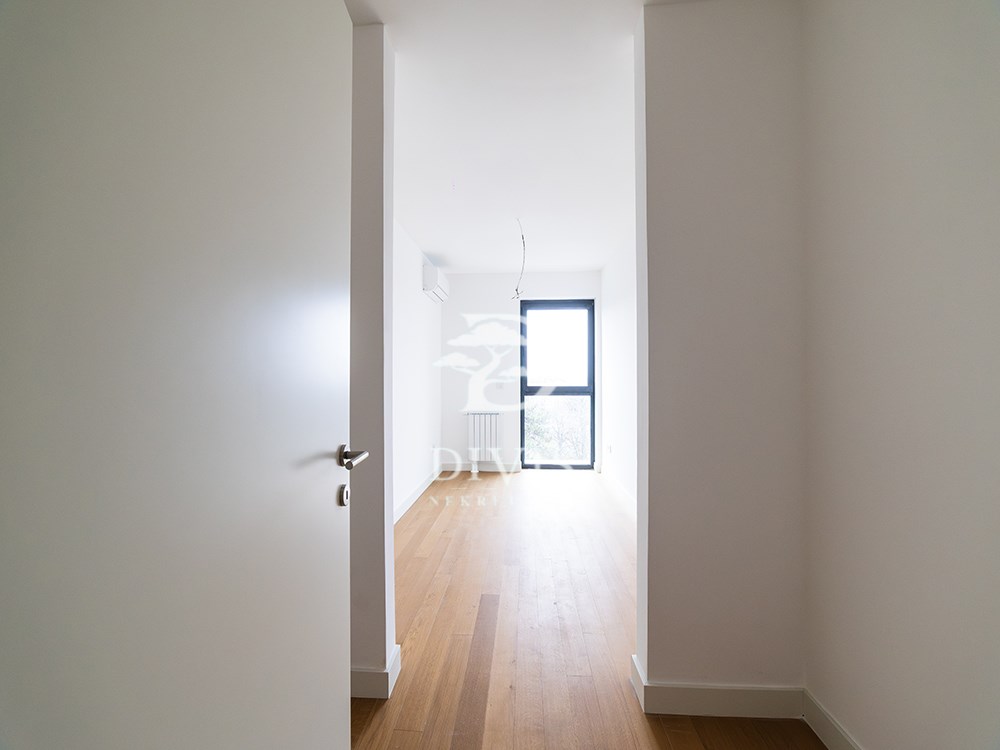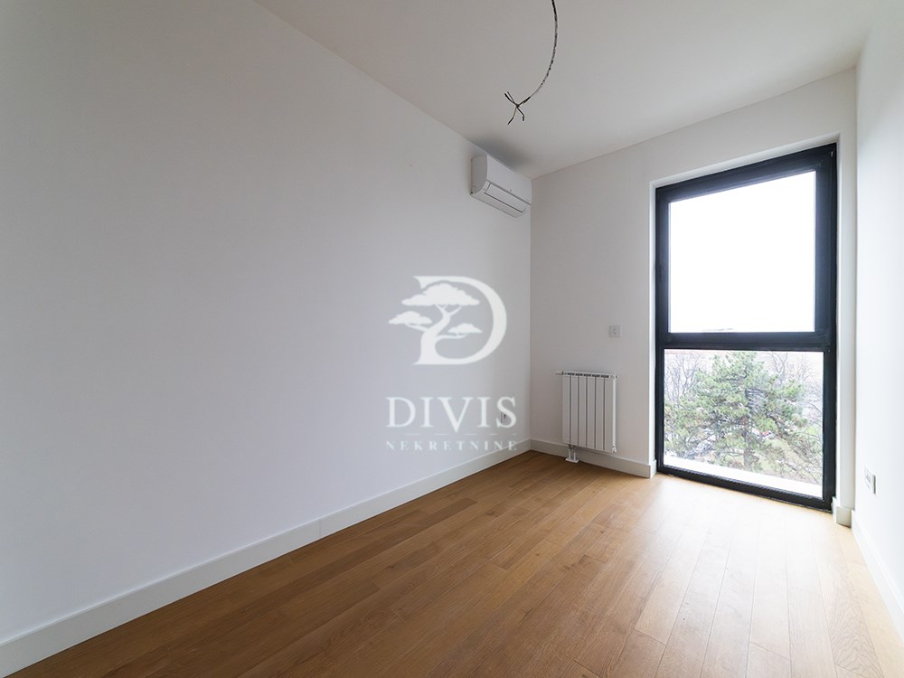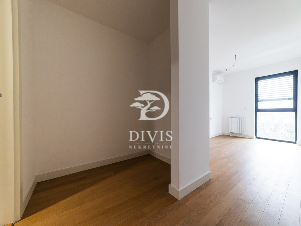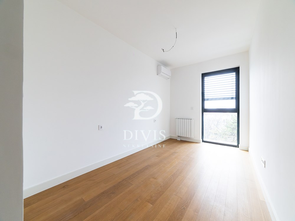 | Prodaje se nov, neuseljavan trosoban stan u savremenom stambeno-poslovnom kompleksu Viva Residence, na Zvezdari, u neposrednoj blizini Zvezdara teatar. Lokacija je infrastrukturno dobro povezana sa ostatkom grada. Stan se nalazi na četvrtom spratu i zapadno je orijentisan. Koncipiran je tako da dnevni i spavaći deo budu jasno razdvojeni. Ulazni deo vodi ka otvorenom dnevnom prostoru u kome su objedinjeni dnevni boravak, kuhinja i trpezarija, iz kog se izlazi na terasu površine 4 m². Spavaći blok čine dve spavaće sobe, svaka sa predviđenim prostorom za garderobere, dok se dodatni prostor za odlaganje nalazi i u ulaznoj zoni stana. Stan raspolaže sa dva kupatila, od kojih je jedno opremljeno kadom, a drugo tuš kabinom, što ovu strukturu čini praktičnom za porodično stanovanje ili izdavanje. Grejanje je centralno, na toplanu, sa ugrađenim kalorimetrima, dok je u kupatilima dodatno izvedeno podno grejanje. Stan je opremljen klima-uređajima u svakoj prostoriji, a završna obrada je u skladu sa standardima novije gradnje. Nekretnina je odmah spremna za useljenje, bez potrebe za dodatnim ulaganjima. Uz stan se prodaje i garažno mesto po ceni od 25.000 EUR. Stan predstavlja dobru opciju za kupce koji traže novogradnju, funkcionalan raspored i lokaciju van strogog centra, ali sa svim gradskim sadržajima na dohvat ruke. Posrednička naknada je u skladu sa Opštim uslovima poslovanja Posrednika DIVIS NEKRETNINE DOO. | |
