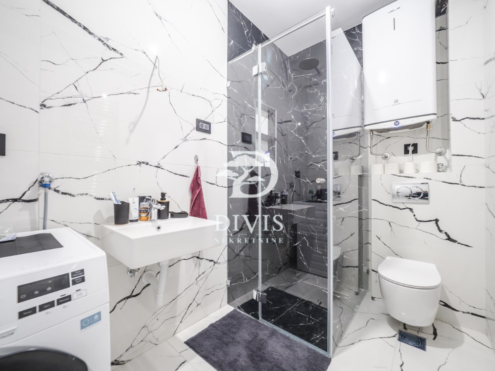| Prodaje se trosoban stan u novogradnji na Zvezdari, u Ilindenskoj ulici, u neposrednoj blizini Bulevara kralja Aleksandra. Stan se nalazi na jednoj od traženijih lokacija u Beogradu, u mirnom porodičnom okruženju, uz kompletnu infrastrukturu u neposrednoj blizini su škole, vrtići, prodavnice, pijaca, kao i odličnu povezanost sa svim delovima grada. Stan je pažljivo projektovan i maksimalno funkcionalan. Sastoji se od ulaznog hodnika, dnevnog boravka, izdvojene kuhinje, dve prostrane spavaće sobe, dva kupatila i terase. Odlična organizacija prostora omogućava komforan boravak i optimalno iskorišćenu kvadraturu. Nekretnina je građena od kvalitetnih materijala i poseduje maksimalnu zvučnu i toplotnu izolaciju zahvaljujući „sendvič“ zidu, kao i drvo-aluminijum stolariju sa troslojnim staklom. Stan je opremljen inverter klimama u svakoj prostoriji, dok kupatilo i kuhinja imaju podno grejanje. U stanu je postavljen hrastov parket I klase, španska keramika, atestirana sigurnosna ulazna vrata, kao i bela medijapan sobna i kupatilska vrata. Prodaje se kompletno opremljen – sa svim kuhinjskim elementima, TV komodom, dva plakara u spavaćim sobama, dva king-size kreveta, garniturom, plakarom u hodniku i kompletnom sanitarijom u oba kupatila. Terasa je natkrivena pergolom (sendvič panel) i termo-stopsol staklom debljine 8 mm. Takođe su ostavljene instalacije za saunu i đakuzi. Stan je uknjižen na 68m2, dok stvarna površina iznosi približno 100m2. Postoji i mogućnost kupovine garažnog mesta u zgradi po ceni od 20.000e bez PDV-a. Zbog svoje lokacije, kvaliteta gradnje i opreme, ova nekretnina predstavlja idealan izbor kako za porodično stanovanje, tako i kao investiciju za izdavanje. Za svaku preporuku. Ovaj trosoban stan na Zvezdari predstavlja odličan izbor za kupce koji traže funkcionalan stan u novogradnji na dobro povezanoj lokaciji u Beogradu. Posrednička naknada se obračunava u skladu sa Opštim uslovima poslovanja agencije ''DIVIS NEKRETNINE'' d.o.o | |